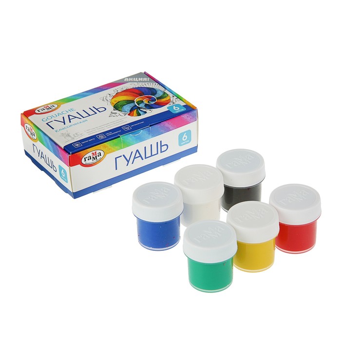 Гуашь 6 цветов ГАММА Классическая